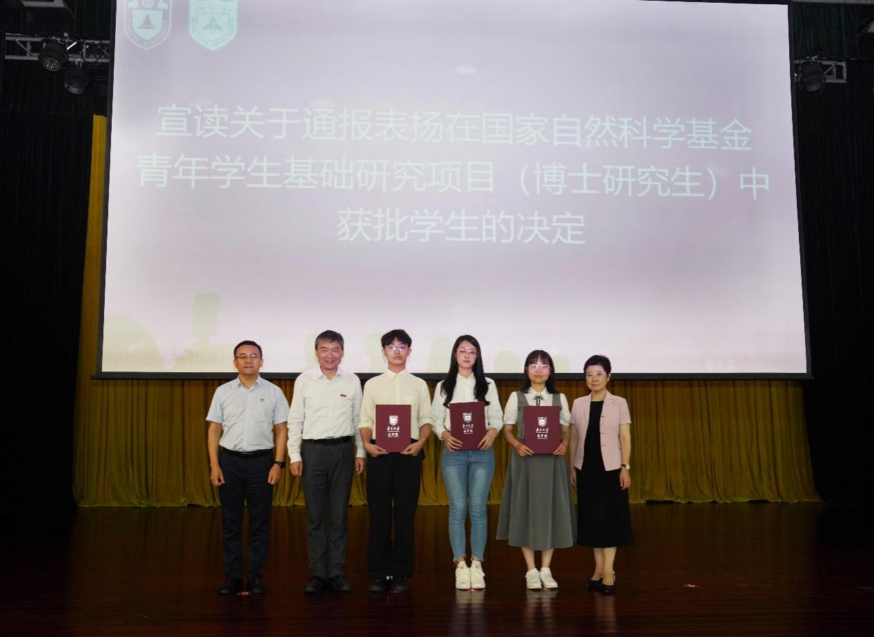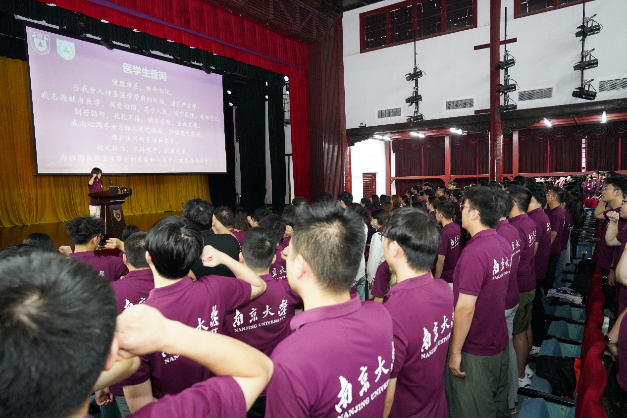 随后,与会领导和嘉宾为新生代表佩戴85po 校徽。王宏伟宣读了《关于通报表扬在国家自然科学基金青年学生基础研究项目(博士研究生)中获批学生的决定》。全体同学以热烈掌声向背后默默付出的全体教师致以教师节问候。2025级硕士研究生陈一丹带领全体新生庄严宣誓。誓言铿锵有力,展现了医学生的坚定信念和决心。