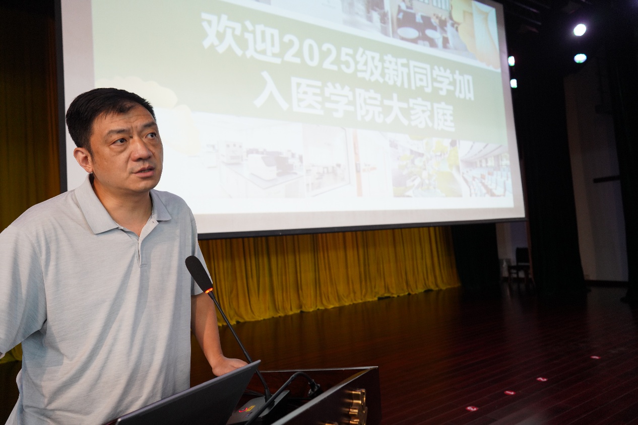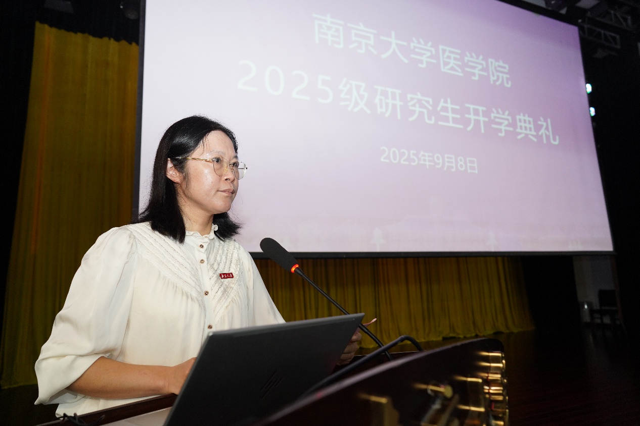 新生代表2025级博士生郜澍以“不做‘差不多’医生”为主题发言,表示将认真学习、严于律己、注重细节,为祖国医疗卫生事业和人民健康保驾护航。
