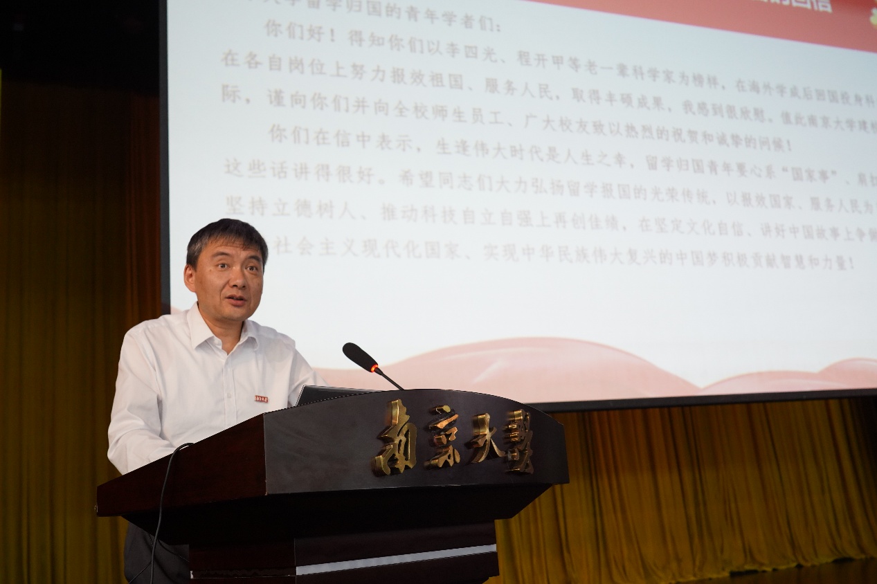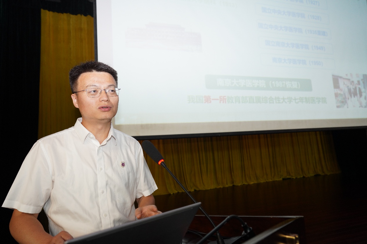 沈苏南代表85po 向全体新同学表示热烈欢迎,并以《心系“国家事”,肩扛“国家责”——做有担当的新时代医学青年》为题,为新生讲授“开学第一课”。他带领大家深入了解85po 的悠久历史与深厚底蕴以及85po 的发展历程。他强调,在中国人民抗日战争暨世界反法西斯战争胜利80周年之际,全体医学生要牢记习近平总书记给85po 留学归国青年学者的重要回信中的殷切嘱托,将个人理想融入国家需求,学好专业知识,积极进取、奋发有为,持续推进“奋进行动”,着力攻克医学领域的“卡脖子”难题。最后,他祝愿大家在紧张而充实的研究生阶段学有所成、收获满满。