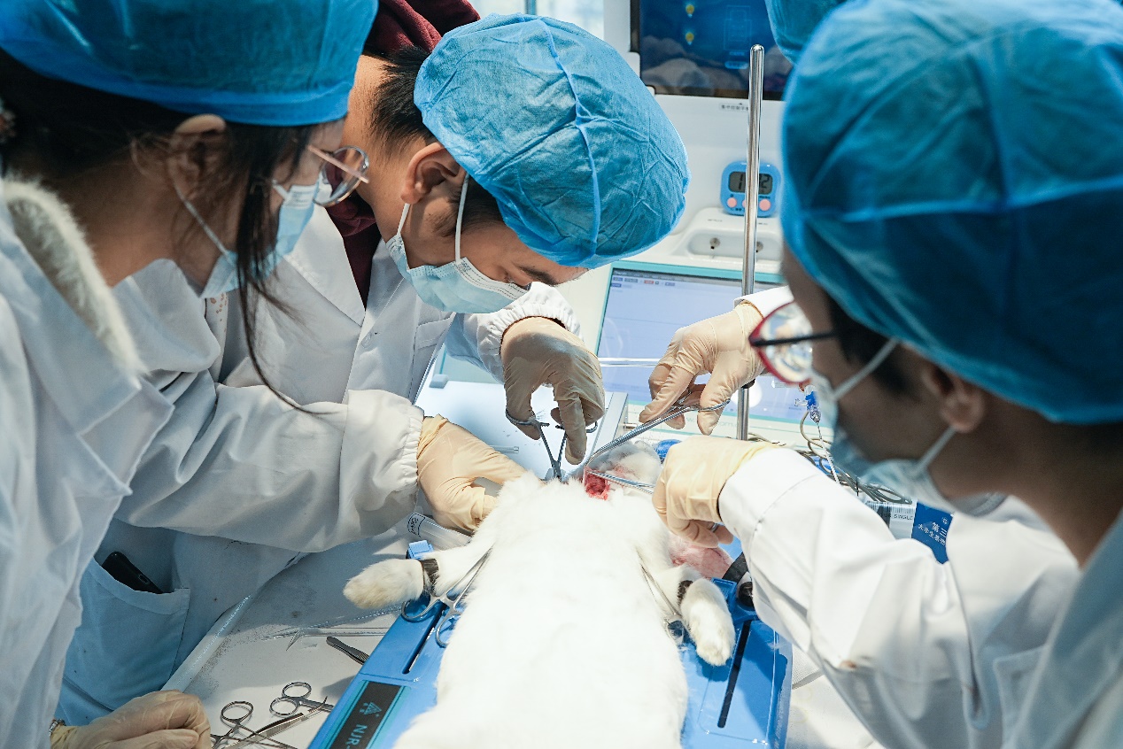 17 日上午,比赛正式拉开帷幕,首先进行了时长 1 小时的理论考试,涵盖解剖、组胚、病理、病原学标本识别理论考核及 ESP 虚拟标准化病人案例考核,全面考查学生对医学基础知识的理解与应用能力。随后的线下实操环节,要求选手在家兔身上进行休克模型复制操作,着重检验学生的动手能力、手术操作规范性及模型构建成功率。比赛中,两队同学沉着冷静、配合默契,凭借扎实的基本功和出色的应变能力圆满完成各项比赛。