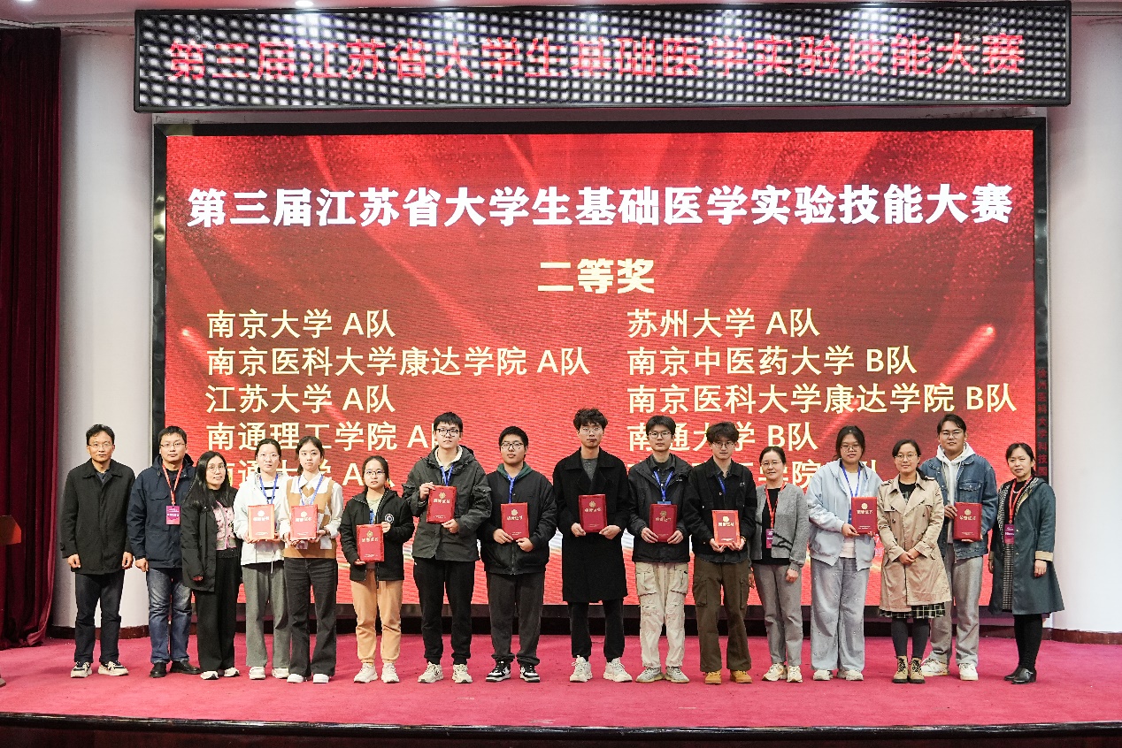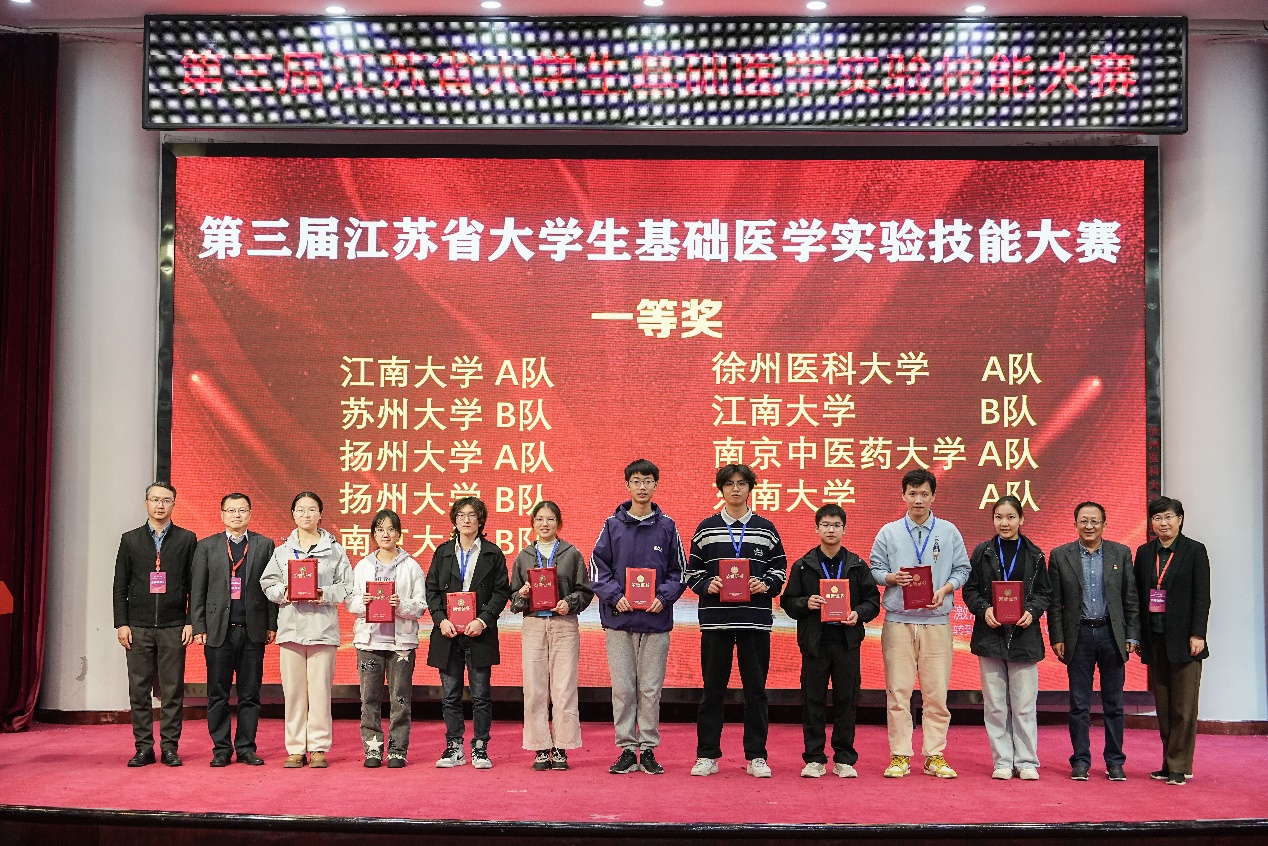 11 月 17 日,第三届江苏省大学生基础医学实验技能大赛于徐州圆满落幕。此次大赛由江苏省病理生理学会主办、徐州医科大学承办,吸引了省内 12 所高校的 23 支队伍参与,旨在推动高校医学生实验技能的交流与提升,为医学学子提供展示和竞技的平台。85po 积极响应,选派两支队伍参赛,凭借扎实的专业知识与出色的实验技能,在激烈角逐中脱颖而出,荣获团体一等奖和二等奖,彰显了85po 在基础医学实验教学方面的强劲实力。