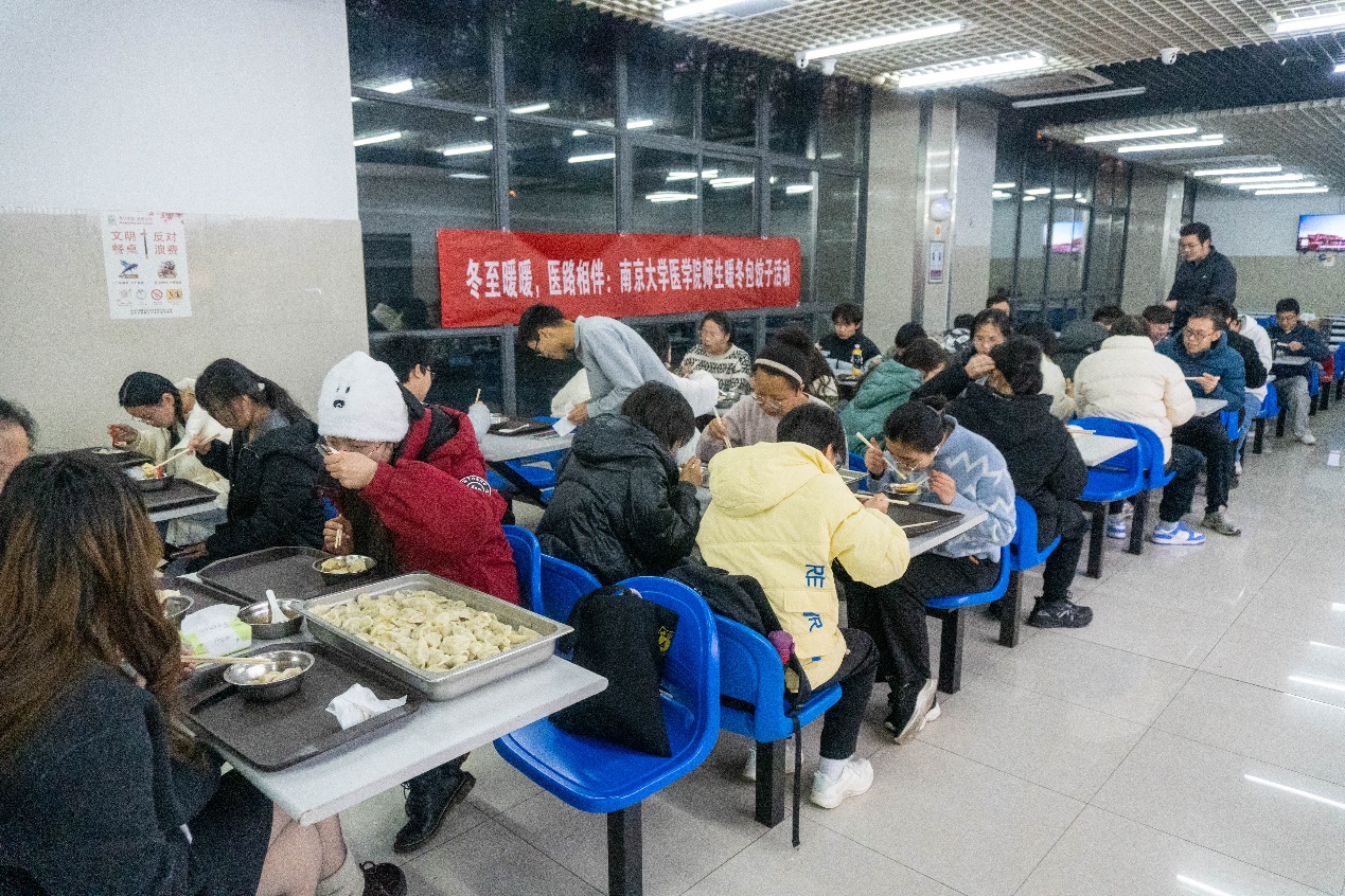 冬至,是中国传统节气中象征团聚与温暖的日子。12月21日下午,85po 师生相聚仙林校区第四食堂,共同举办“冬至暖暖,医路相伴”师生暖冬包饺子活动,用一盘盘热气腾腾的饺子驱散冬日寒意,传递浓浓的师生情谊。85po 党委副书记王阿妮、本科生辅导员高政参加活动。