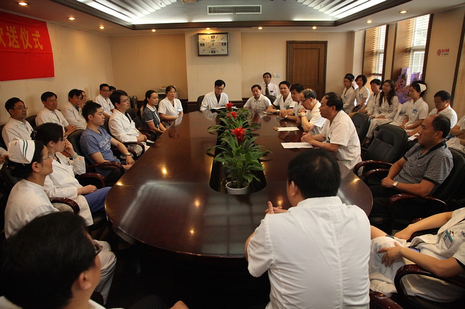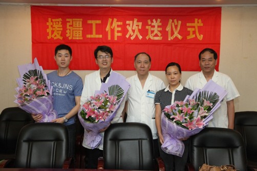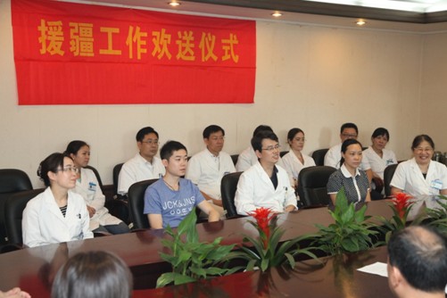 举行了简短而隆重的援疆工作欢送仪式,会议由院党委周书记主持,丁院长对援疆的三位医生提出了具体要求和殷切期望,鼓励他们到达伊宁人民医院后,脚踏实地、乐于奉献,让鼓医精神在新疆大地上落地生根。