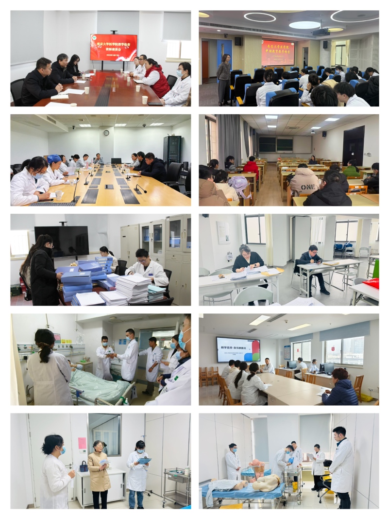 师生座谈环节,各附属医院教师代表结合教学实践分享经验、反映问题,检查组现场给予了针对性的回应;学生代表积极反馈实习学习体会,为优化培养方案提供重要参考。教学档案审查严谨细致,重点关注教学材料的规范性与完整性。教学查房与临床技能抽查环节,专家现场评估带教规范、学生操作及思维培养实效,对学生技能操作进行点评,并对技能培训体系提出改进建议。