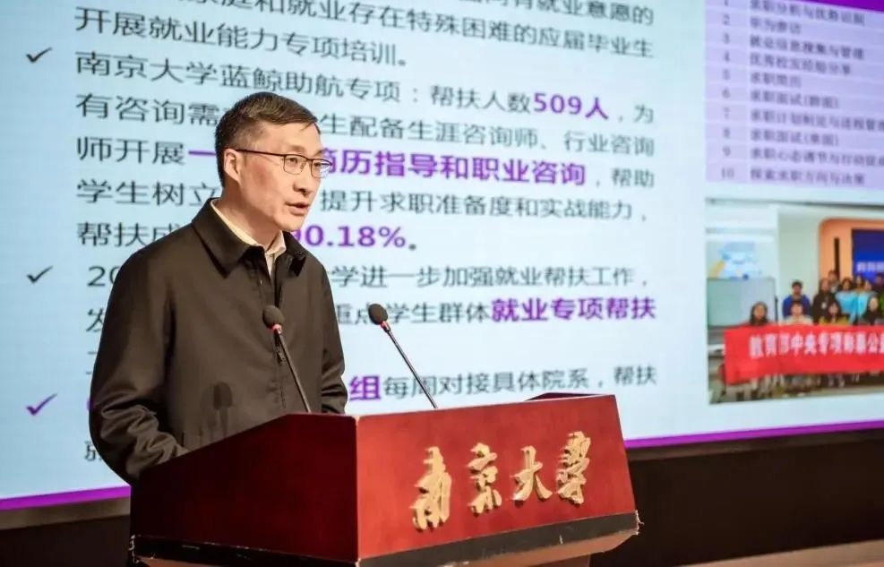 2023年3月1日,“砥砺奋进 雄创一流”2022届就业工作总结暨高质量就业研讨与推进会在仙林校区召开。中国科学院院士、校长吕建出席会议并讲话,校党委常委、副校长张峻峰汇报并做工作部署,校党委常委、副校长王振林主持会议。