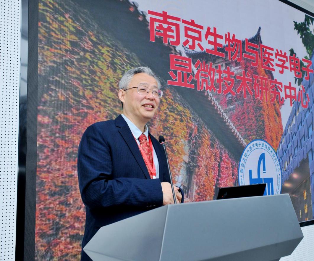 祝世宁对本次会议的召开和电镜中心的成立表示热烈祝贺。他表示电子显微镜技术的出现将人们对世界的认识推进到纳米甚至亚埃尺度,促使纳米材料学和结构生物学的研究取得突破性进展,电镜中心的成立具备重大的科技和社会意义,必将促进生物、材料、医学的交叉学科研究,为临床病理分析提供技术支持,为以医学为中心的交叉学科培养高端仪器设备分析和研究型人才。