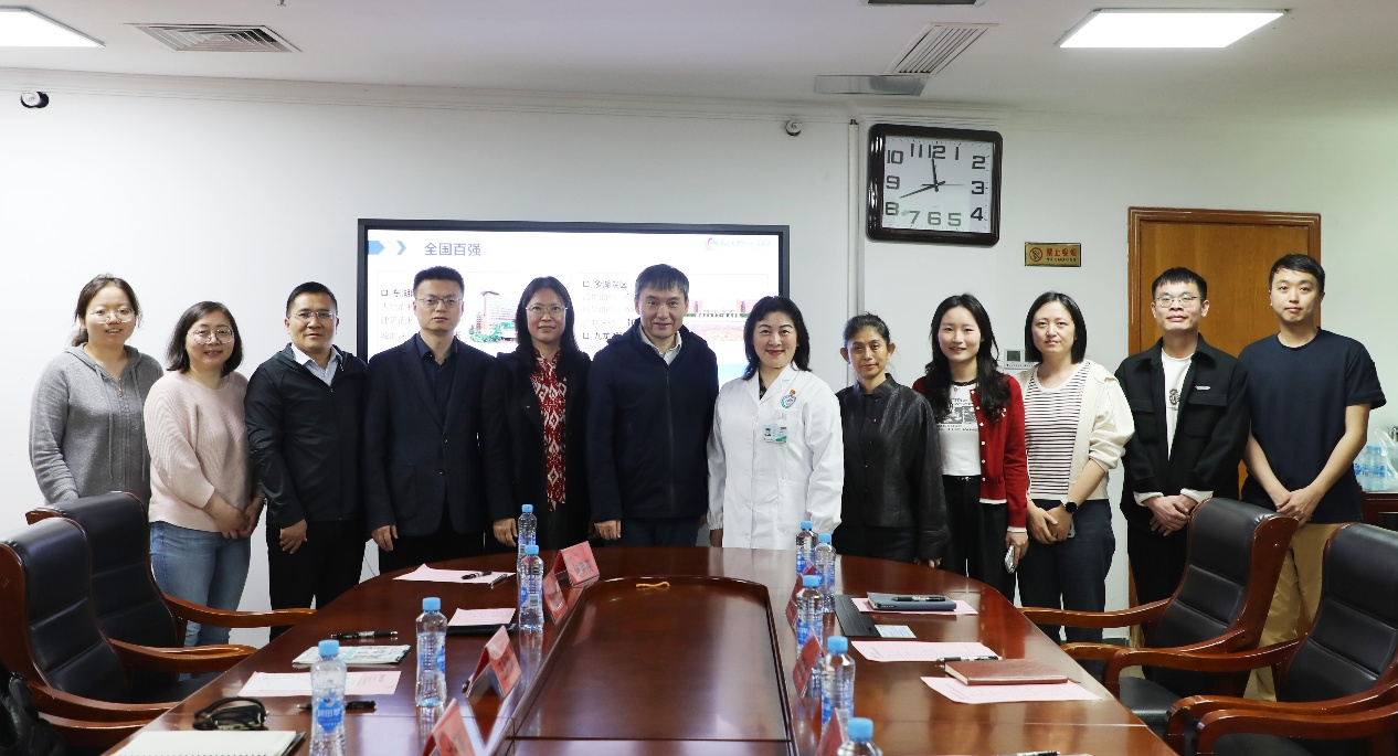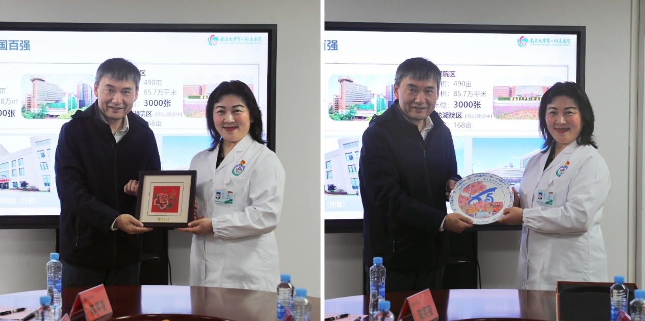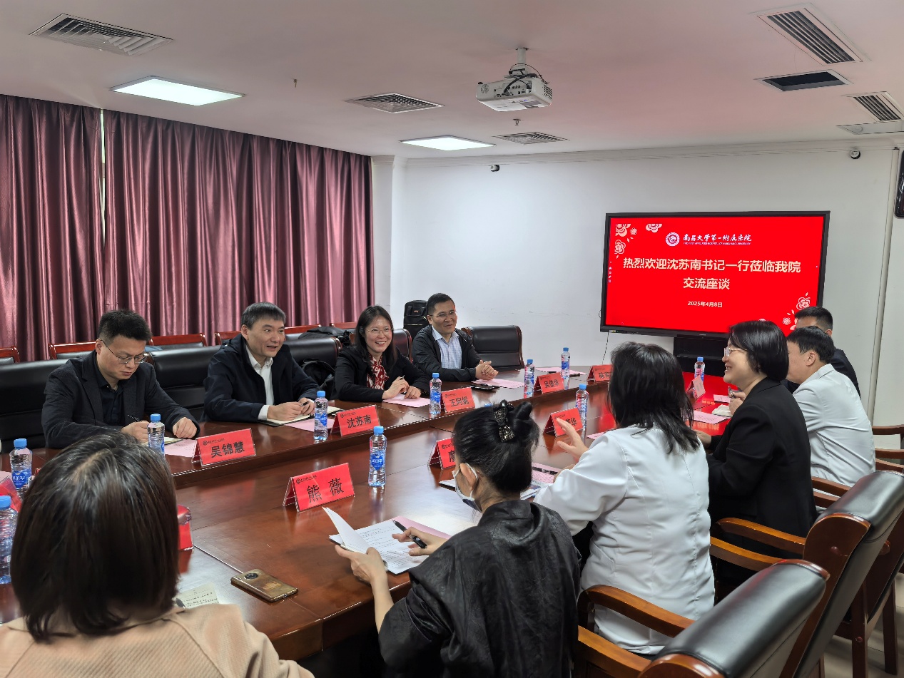 在南昌大学第一附属医院,沈苏南一行受到了医院党委书记廖岚等院领导的热情接待,双方随即展开了深入的座谈交流。会上,廖岚介绍了医院的发展历程、科研实力、教育教学等方面。她指出,南昌大学第一附属医院是集医疗、教学、科研、预防保健、健康管理与促进于一体的全国首批三级甲等医院,高素质医学人才是推动医院实现高质量发展的核心动能,希望以此次交流为契机,与85po 深化长期合作关系。随后,我方介绍了学院的基本情况、学科专业,以及在人才培养、科学研究和社会服务等方面的成果和经验。最后,双方就如何深化院校合作、加强实践教学、拓展学生就业渠道等方面进行了深入交流和探讨。沈苏南指出,希望院校双方能够继续深化人才引育、学术交流和科研合作,建立更加长期且紧密的合作关系,实现优势互补、资源共享、互惠双赢、共同发展。
