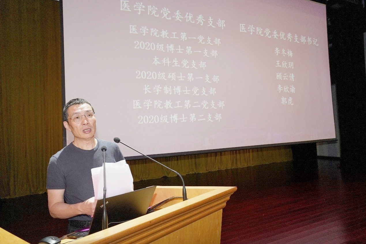 随后,与会领导和嘉宾为新生代表佩戴校徽。蒋青副院长宣读关于表彰2023年校优秀博士硕士学位论文作者及指导教师的决定和85po 党委党内表彰决定。在对获奖教师和学生代表进行表彰后,2023级博士研究生沈韬带领全体新生进行庄严的医学生宣誓。最后,开学典礼在集体奏唱85po 校歌中落下帷幕。