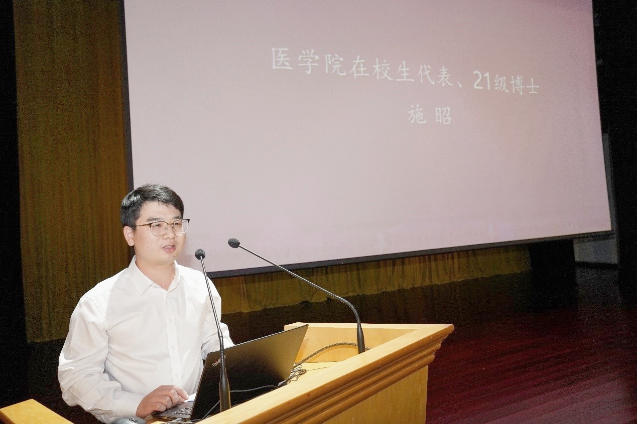 新生代表2023级博士研究生巢怡宁发言。她表示,各位研究生新生要时刻牢记自己为追求梦想而来,为推进祖国医药事业发展而来,勇立时代潮头,争做时代先锋,立志为人类身心健康事业添砖加瓦。