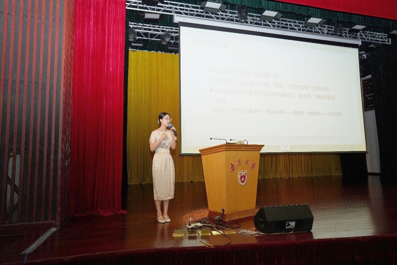 学校心理健康教育与研究中心徐枟老师谈到新阶段的心理适应问题。她指出,在研究生阶段,要学会接纳自己;建立起支持系统,学会利用资源解决困境;通过多种方法提升自我能力和认知。最后,王阿妮以成长为杰出的领导型临床学家和医学科学家为题,从生涯规划、学业发展、学院重视、学校创新创业资源进行了分享和指导,并为本次入学教育做总结。