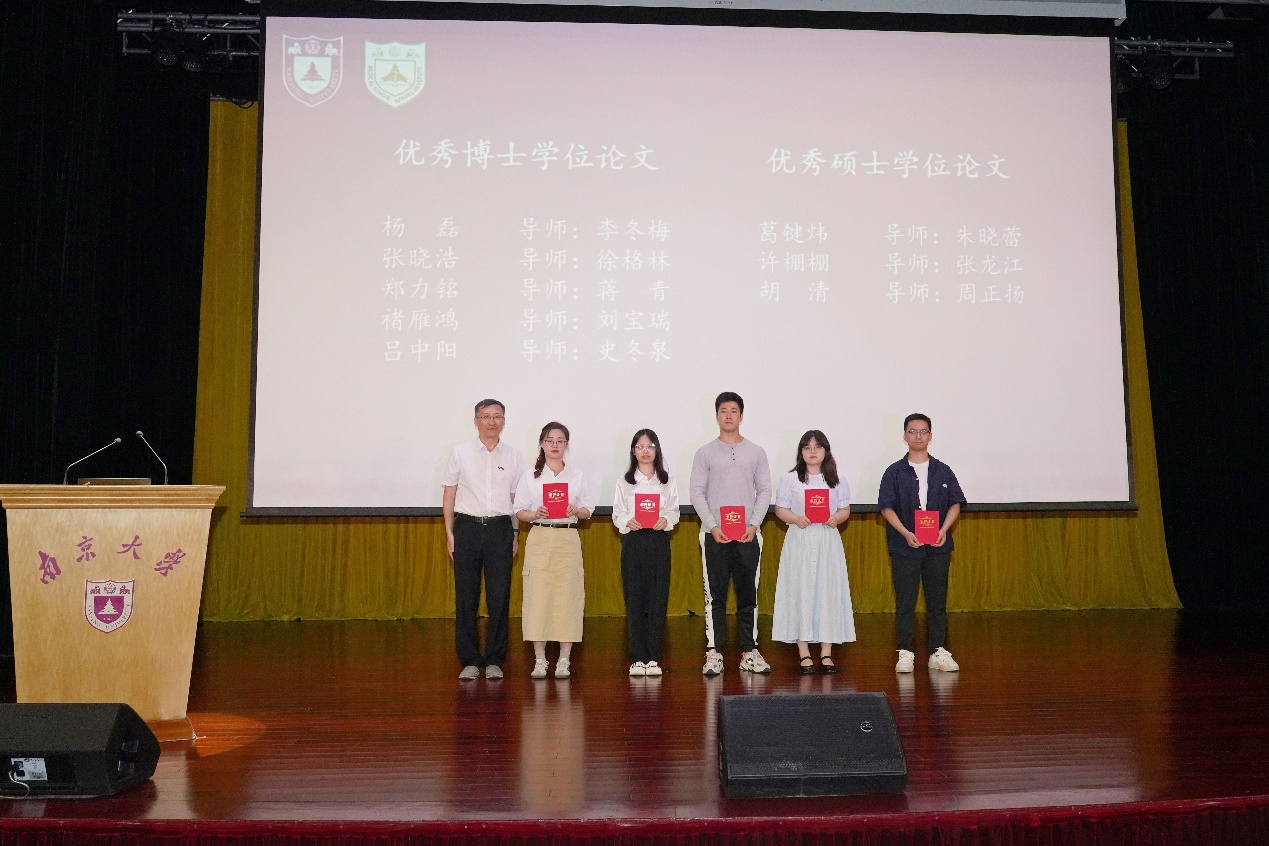 2021级博士研究生施昭作为在校生代表发言。他以亲身经历为例,鼓励同学们勇于尝试,接触新的事物,不断突破自己。他表示,要时刻谨记初心和南大的期许,要敢于尝试,实现自我超越。