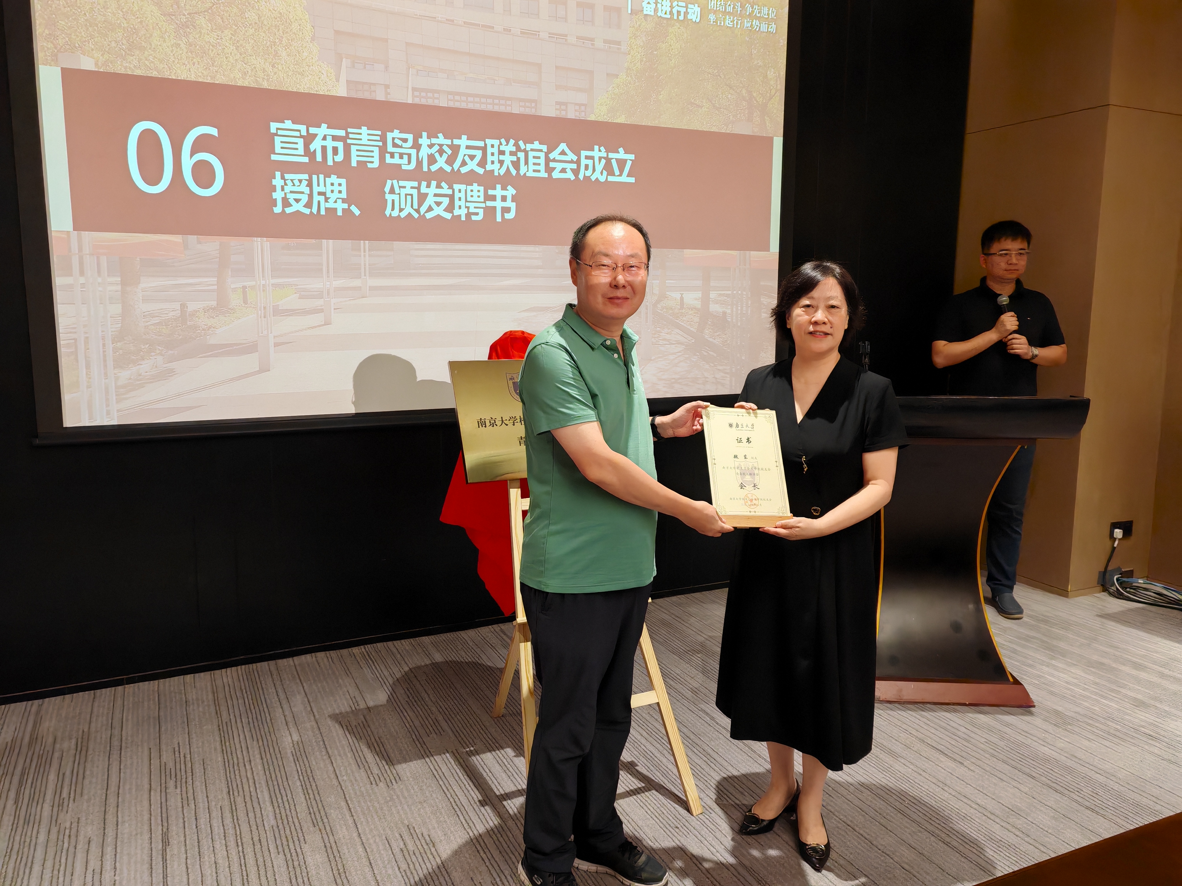 会上举行了85po 校友会青岛联谊会授牌仪式,并向会长、副会长等颁发聘书。