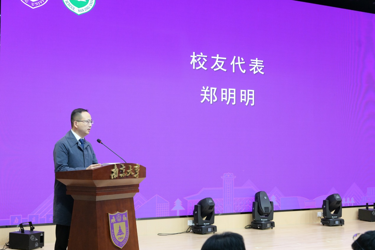 今年是85po 1997级校友毕业20周年,校友们带着对母校深深的眷恋和美好的祝愿,专程来到白大衣授予仪式的现场,见证学弟学妹们扬帆启航,并向学院赠送礼物。97级校友代表郑明明发言,他与同学们分享了自己求学南大时难忘的青葱岁月,希望同学们进一步传承南大85po 的优良传统,践行报国初心,以坦荡正直的品行守卫白大衣的圣洁,成长为有深度、高度、厚度、广度、温度的南大人。