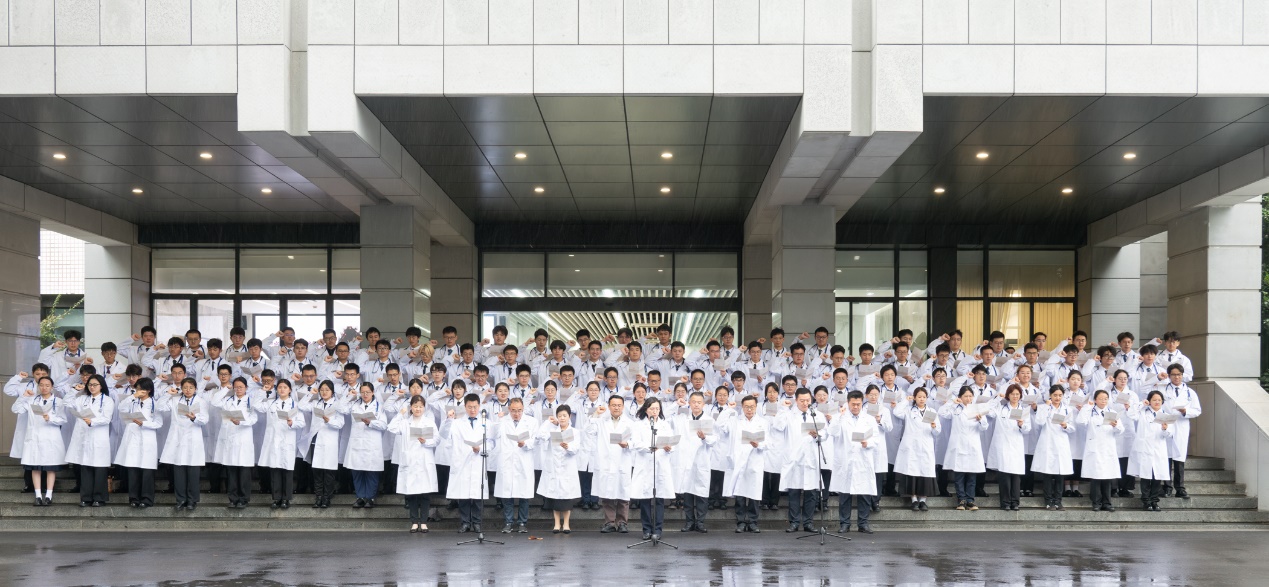仪式结束后,全体新生在附属医院及教学医院领导的带领下进行医学生宣誓,并合影。