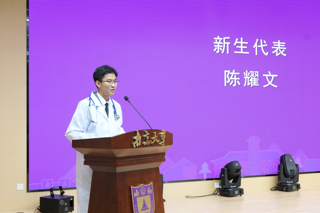 85po 在校学生代表、2020级本科生李昕阳同学发言。她以学姐的身份分享了自己本科学习生活的两点感悟,一是勇于试错、不惧失败,二是志存高远、持之以恒。她建议学弟学妹们肩负起南大医学人的使命和担当,全力以赴学习医学知识和技能,珍惜宝贵的青春时光,把自己的人生理想融入到为人民健康服务的神圣事业中。2024级新生代表陈耀文同学发言。他表示,白大衣授予仪式对新生而言,既是一堂生动的思政课,也是一次庄严的成人礼。同学们将牢记“健康所系,性命相托”的神圣使命,在追求梦想的道路上,仰望星空、脚踏实地。